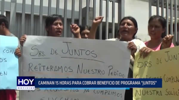 Beneficiarias del programa “Juntos” que viven en el caserío de Succhamarca llegaron hasta Trujillo para denunciar que tienen que caminar hasta 15 horas para poder cobrar su beneficio.