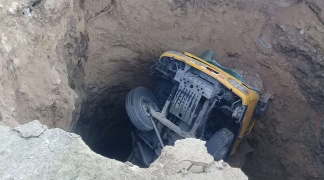 En el distrito de Salpo, Otuzco, un chofer quedó herido al hundirse su camión en un profundo forado.
