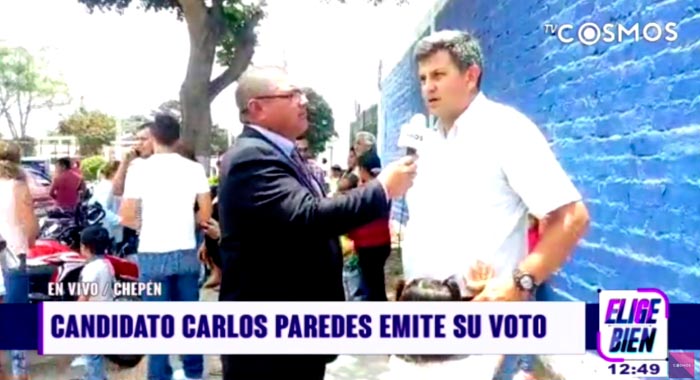 El candidato Carlos Paredes emite su voto en la ciudad de Chepén y manifestó no estar conforme en los comicios electorales por presentar presunto fraude en los votos de los ciudadanos.