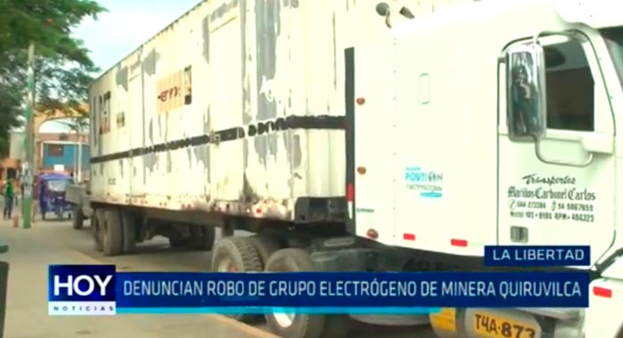 El abogado de un grupo de acreedores y empresarios locales de la minera Quiruvilca, denunció el robo de un grupo electrógeno valorizado en un millón y medio de soles.