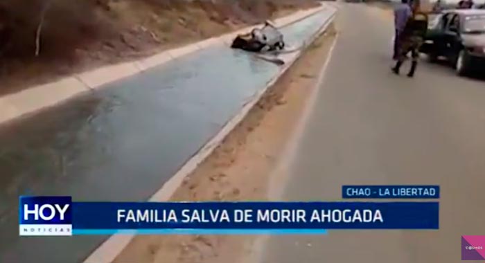 Integrantes de una familia salvaron de morir ahogados luego que el automóvil en el que viajaban cayera al canal madre del Proyecto Especial Chavimochic, en el distrito de Chao.