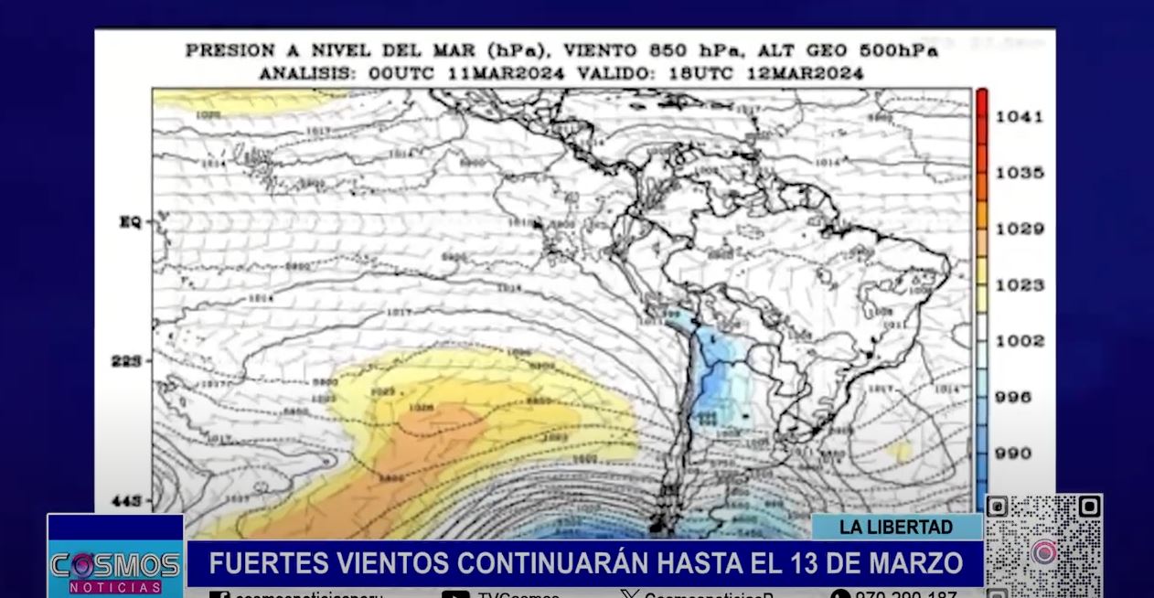 El analista meteorológico del SENAMHI en La Libertad, Ing. Martin Caillahua, detalló que estos vientos en la costa se registrarán desde el 11 hasta el miércoles 13 de marzo. Precisó que esto se debe a vientos de acercamiento del Anticiclón del Pacífico Sur a lo largo de la costa peruana.