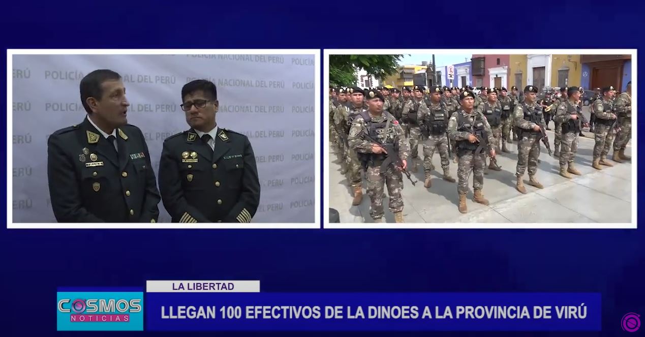 100 efectivos de la Dinoes llegaron a la provincia de Virú, para combatir la delincuencia en esta zona de la región. Según el jefe de la III macro región policial La Libertad, Augusto Ríos, se espera que estos agentes se queden hasta fin de año.