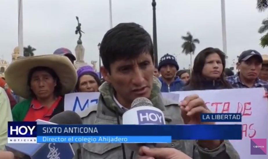 Pobladores de Chugay y su alcalde, llegaron a Trujillo para denunciar que el Gobierno Regional no ha cumplido con la reconstrucción de su colegio, afectado por el tiempo y las lluvias.