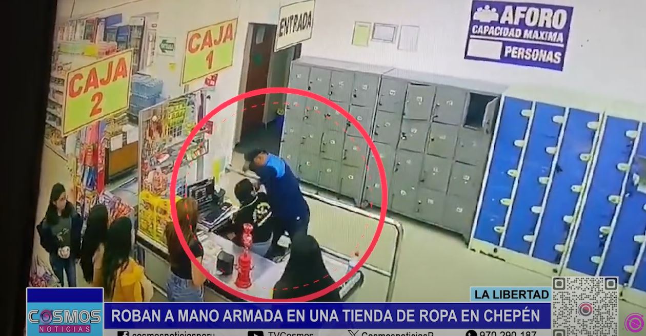 La inseguridad incrementa en la provincia de Chepén, esta vez en la se produjo un asalto a mano armada en un local de nombre Happy Shoping. En imágenes captadas por cámaras de seguridad, se evidencia que delincuente ingresa con un arma de fuego en la mano para cometer su fechoría.