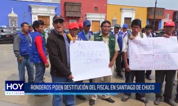 Un grupo de ronderos de la provincia de Santiago de Chuco llegó a la Plaza Mayor de Trujillo para pedir la destitución del fiscal de su jurisdicción. Según denunciaron, la gestión del magistrado es deficiente y favorecería a presuntos delincuentes.
