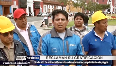 El Sindicato de Trabajadores de la Minera Quiruvilca se congregó en la Plaza Mayor para denunciar a dicha empresa por incumplir con el pago de sus remuneraciones y beneficios de ley.