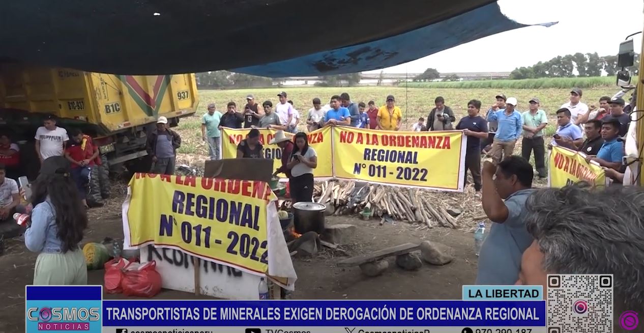 Transportistas de minerales vienen acatando desde hace 4 días una paralización de labores de manera pacífica. Más de 30 unidades se ubican en la Carretera Industrial, a la altura del distrito de Laredo, exigiendo la derogación de la Ordenanza Regional 011-2022, la cual tiene por objetivo regular el traslado, transporte y comercialización de minerales o productos de la pequeña minería y minería artesanal en La Libertad.