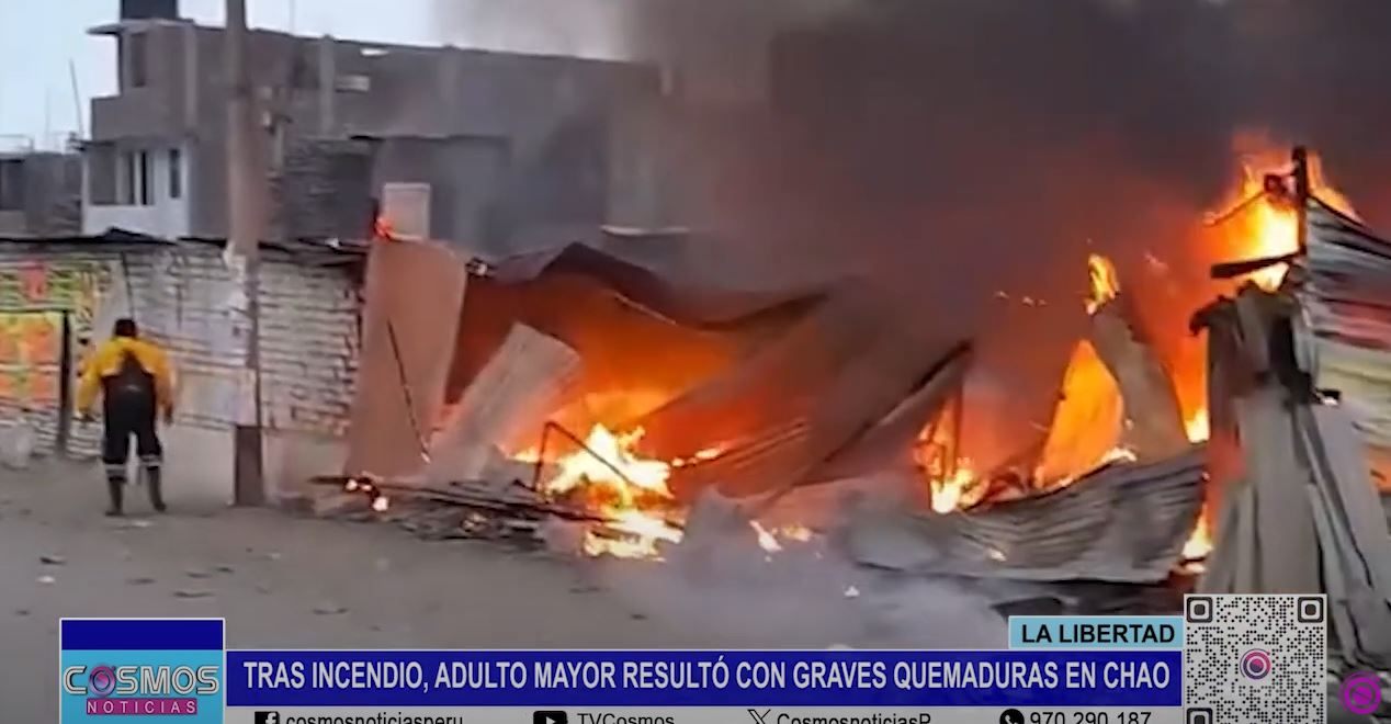 La mañana del lunes, un rancho en el distrito de Chao, provincia de Virú, se incendió, y un adulto mayor resultó con graves quemaduras. Sin embargo, fue auxiliado por los vecinos.