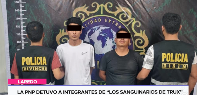En un contundente operativo realizado el último domingo, la policía nacional del Perú, en coordinación con unidades especializadas de inteligencia, intervinieron a los presuntos miembros de la banda criminal “Los sanguinarios de Trux». Los detenidos, Kenyi Jenny Rodríguez Cabrera alias “Santo” y Alex Waldir Rodríguez Cabrera alias «Riki» se encuentran inmersos en presuntos delitos graves que incluyen tenencia ilegal de municiones y explosivos, tráfico ilícito de drogas y extorsión.