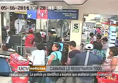 Las cámaras de seguridad del centro comercial Plaza Vea facilitan la investigación de la policía para detener a los delincuentes que la asaltaron el último fin de semana. Estos se llevaron más de 15 mil nuevos soles.