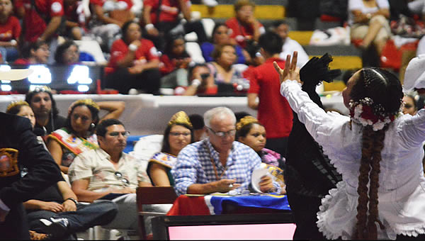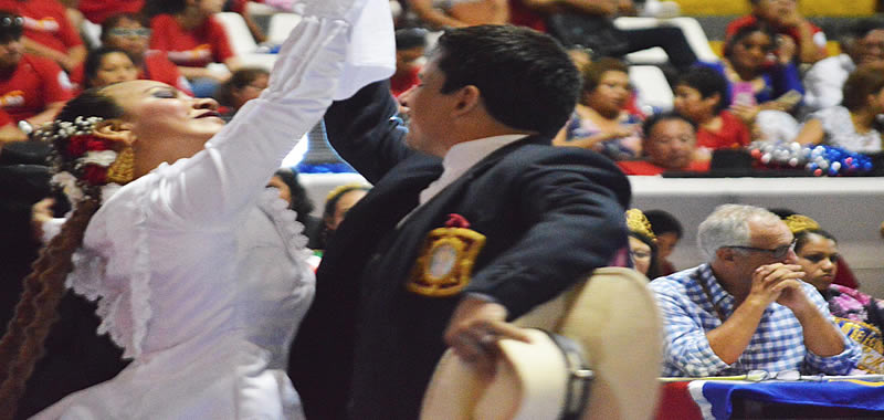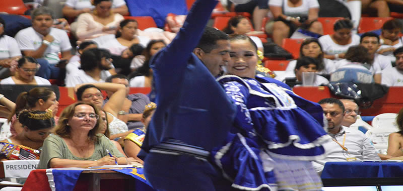 En un intermedio de la categoría adultos, hace su ingreso su majestad Fernanda I acompañada del campeón nacional, Jonathan Pacheco, y nos deleitan al ritmo de una marinera norteña.