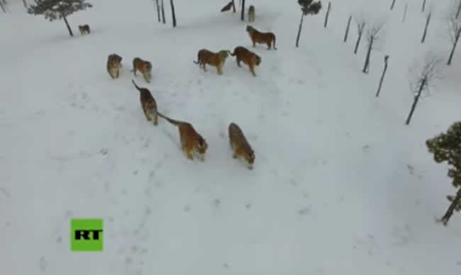 Un video que muestra a tigres con sobrepeso es el nuevo viral del momento en las redes sociales. En éste se observa como un grupo de tigres, muy bien alimentados durante el invierno, corren persiguiendo un dron con la finalidad, según informan medios chinos, de ejercitarlos y así hacerlos bajar de peso.