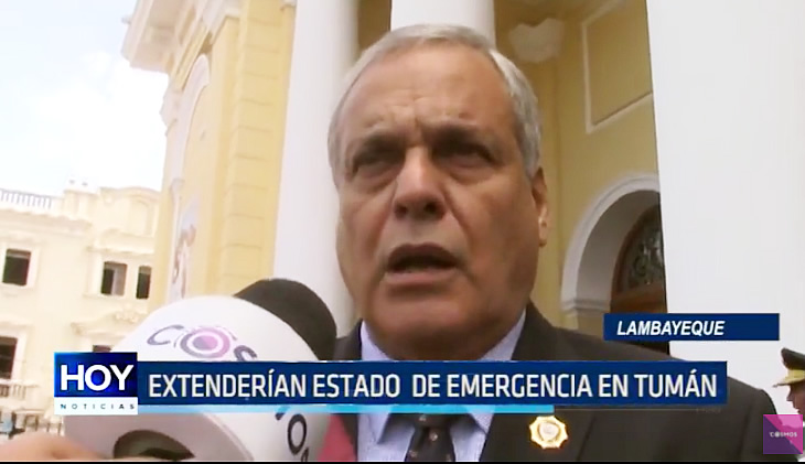 Inicio Noticias Chiclayo Lambayeque: Extenderían estado de emergencia en Tumán NoticiasChiclayoNacionalesPapa Francisco Lambayeque: Extenderían estado de emergencia en Tumán Por Tv Cosmos - 07/12/2017 741 0 FacebookTwitterPinterestWhatsApp El prefecto regional informó que se extendería el estado de emergencia en Tumán por la próxima llegada del Papa Francisco. TE PUEDE INTERESAR Si te interesa nuestras noticias, puedes seguir nuestras últimas publicaciones por Facebook, Twitter, y puedes suscribirte aquí a nuestro canal de Cosmos Noticias TUITEA COMENTA Y COMPARTE Tweets by CosmosNoticiasPe Artículos relacionadosMás del autor Congreso premió a ganadores del concurso “Mujeres que Inspiran” PRIN oficializa candidatura presidencial y equipo piurano al Congreso Rospigliosi saluda a los peruanos por Navidad y ratifica compromiso con el país POPULAR CATEGORIESNoticias66232Actualidad51007Trujillo42650Nacionales9348Deportes7303Espectáculos4545 NUEVO CONSEJO DIRECTIVO ASUME LA ASOCIACIÓN NUMISMÁTICA Y FILATÉLICA DE TRUJILLO TV COSMOS - 05/03/2026 0 Congreso premiará este martes a ganadores del Concurso Nacional de Fotografía “Mujeres que Inspiran” TV COSMOS - 03/03/2026 0 Alejandro Sanz presenta el video de ‘Rimowa’ en colaboración con Elena Rose TV COSMOS - 23/02/2026 0 Jaze logra su primer sold out en México y consolida su gira internacional TV COSMOS - 23/02/2026 0 Han pasado más de 20 años y la anemia sigue afectando a más del... TV COSMOS - 19/02/2026 0 - Advertisement -