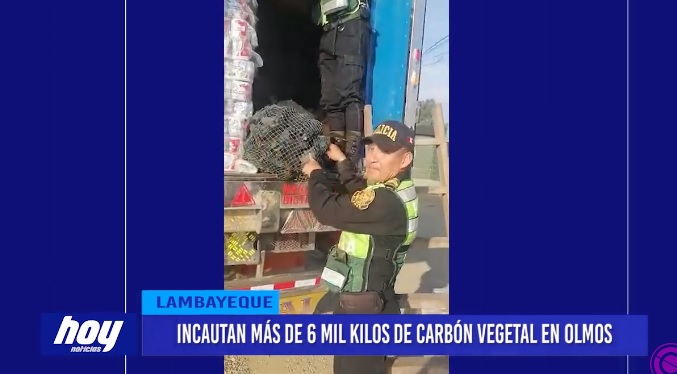 Más de 6 mil kg de carbón vegetal fueron decomisados en la carretera vieja que va para Olmos, este producto venía camuflado entre golosinas y otros productos para engañar a las autoridades policiales.