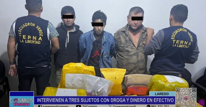 Tras un operativo de allanamiento y descerraje del inmueble en la Av. Remigio Esquivel, en el asentamiento humano Víctor Raúl de Laredo, un grupo de agentes del grupo Terna detuvo a tres sujetos, logrando la incautación de PBC, paquetes con cannabis sativa, marihuana, dinero en efectivo y otras especies.