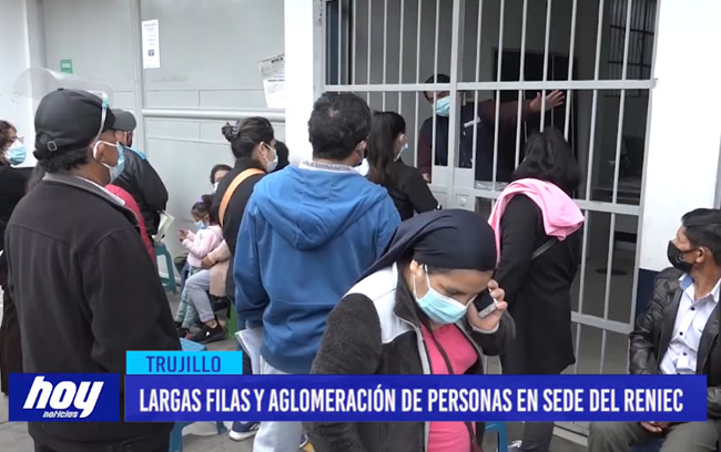 En la sede del RENIEC de la urbanización Los Cedros, se registraron largas filas y aglomeración de personas, incluso niños para realizar distintos trámites. Muchos señalaron que aguardaban desde la noche anterior.