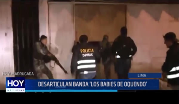 Esta madrugada, la Policía y la Fiscalía realizaron un megaoperativo en Lima, Callao y Tumbes, y desarticularon a la banda «Los babies de Oquendo», dedicada a la extorsión, sicariato y usurpación de terrenos. 51 miembros de esta organización criminal fueron detenidos. El megaoperativo contó con la participación de 1200 agentes y 70 fiscales.