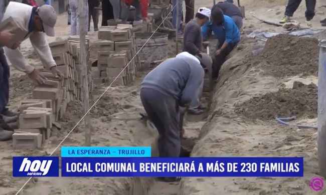 El alcalde José Ruíz visitó el terreno en donde vienen construyendo el local comunal en el sector Nuevo Jerusalén del distrito de La Esperanza, la municipalidad de Trujillo aportó con materiales para su creación, la cual beneficiará al desarrollo de más de 230 familias.