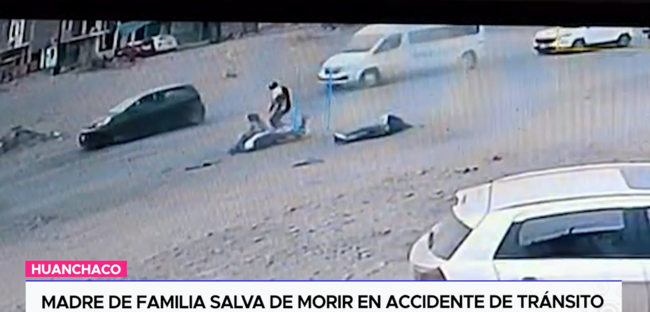 La mañana del jueves, una madre de familia fue atropellada por una motocicleta en plena vía del centro poblado El Milagro, distrito de Huanchaco. El accidente fue captado por cámaras de seguridad, donde se observa a la mujer cruzando la avenida acompañada de su esposo, quien cargaba a un menor de edad. En un intento por ganar el paso, la pareja apresura su caminar justo cuando aparece la motocicleta, que termina embistiendo violentamente a la mujer.