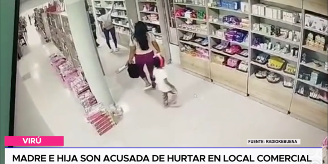 ¡Todo queda en familia! Lo que vera en los siguientes minutos, es de no creer, al parecer, una madre y una menor habrían llegado a este local ubicado en el distrito de Chao, con un objetivo claro, llevarse todo lo que puedan en esta cartera negra.