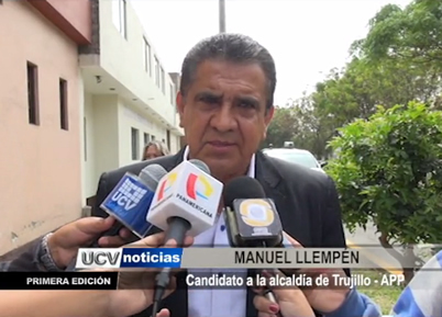 Inicio Actualidad Manuel Llempén denuncia agresión tras debate ActualidadNoticiasTrujillo Manuel Llempén denuncia agresión tras debate Por Tv Cosmos - 08/09/2014 399 0 FacebookTwitterPinterestWhatsApp El candidato a la alcaldía de Trujillo por APP, Manuel Llempén, fue agredido después de participar en un debate este fin de semana. TE PUEDE INTERESAR Si te interesa nuestras noticias, puedes seguir nuestras últimas publicaciones por Facebook, Twitter, y puedes suscribirte aquí a nuestro canal de TUITEA, COMENTA Y COMPARTE Tweets by CosmosNoticiasPe Artículos relacionadosMás del autor NUEVO CONSEJO DIRECTIVO ASUME LA ASOCIACIÓN NUMISMÁTICA Y FILATÉLICA DE TRUJILLO Congreso premiará este martes a ganadores del Concurso Nacional de Fotografía “Mujeres que Inspiran” Alejandro Sanz presenta el video de ‘Rimowa’ en colaboración con Elena Rose POPULAR CATEGORIESNoticias66232Actualidad51007Trujillo42650Nacionales9348Deportes7303Espectáculos4545 NUEVO CONSEJO DIRECTIVO ASUME LA ASOCIACIÓN NUMISMÁTICA Y FILATÉLICA DE TRUJILLO TV COSMOS - 05/03/2026 0 Congreso premiará este martes a ganadores del Concurso Nacional de Fotografía “Mujeres que Inspiran” TV COSMOS - 03/03/2026 0 Alejandro Sanz presenta el video de ‘Rimowa’ en colaboración con Elena Rose TV COSMOS - 23/02/2026 0 Jaze logra su primer sold out en México y consolida su gira internacional TV COSMOS - 23/02/2026 0 Han pasado más de 20 años y la anemia sigue afectando a más del... TV COSMOS - 19/02/2026 0 - Advertisement -