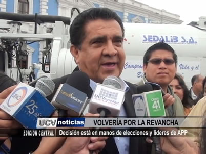 El sueño de convertirse en el próximo presidente regional aún sigue latente en Manuel Llempén, responsable político regional de Alianza Para el Progreso. El también presidente del directorio de SEDALIB no descartó postular al mismo cargo; sin embargo, agregó que la decisión final está en manos del máximo líder y de las elecciones internas.