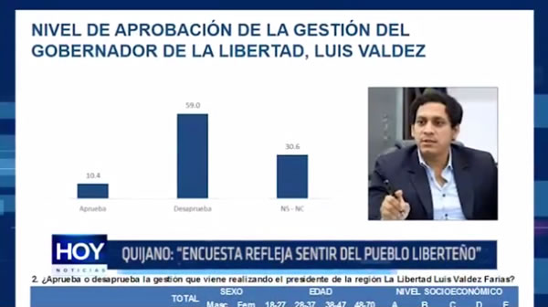 Para el consejero por Pataz, Manuel Quijano, las cifran que colocan al gobernador regional Luis Valdez con una desaprobación del 59%, son sólo un reflejo de lo que él anunciaba hace mucho tiempo.