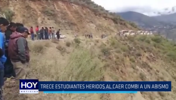 13 estudiantes gravemente heridos dejó un accidente de tránsito que se registró a la altura del distrito de Marcabal en la provincia de Sánchez Carrión. El vehículo cayó a un abismo de 50 metros.