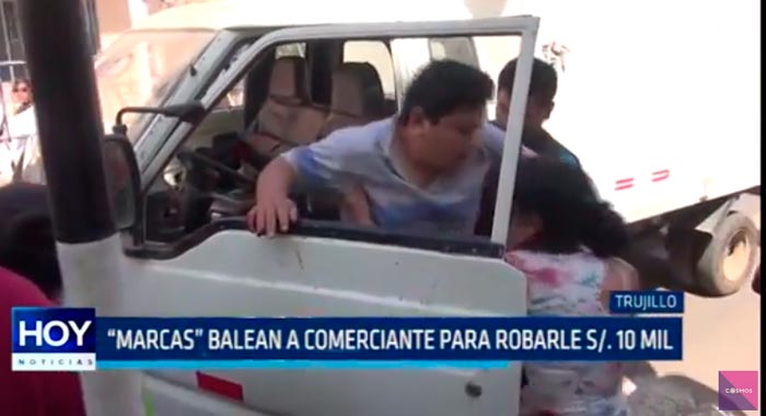«Marcas» asaltaron a un comerciante a quien, además, hirieron de un balazo para quitarle diez mil soles que había retirado de una agencia bancaria.