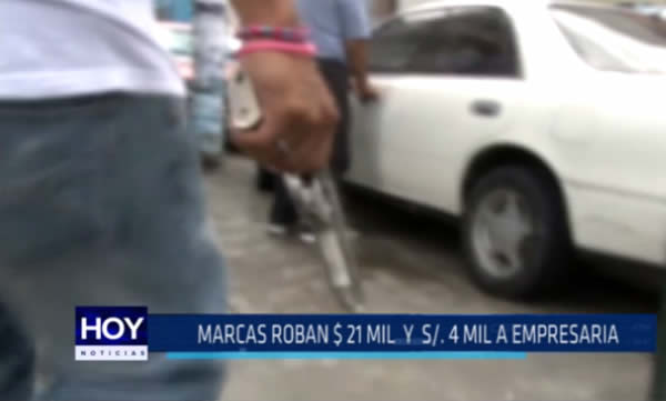 «Marcas» asaltaron una empresaria minera a pocos metros de su vivienda. Robaron 21 mil dólares y cuatro mil soles. Los delincuentes la siguieron desde una agencia bancaria del Centro Histórico.