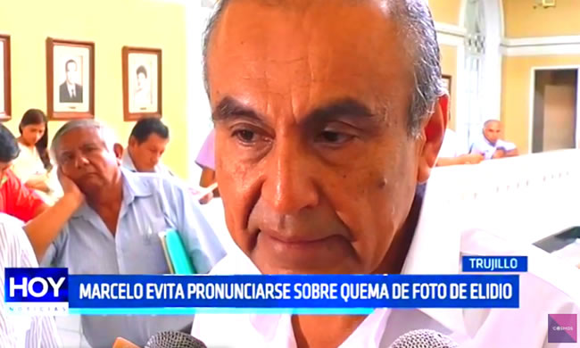 El alcalde de Trujillo Daniel Marcelo evitó pronunciarse sobre la quema del cuadro de su antecesor Elidio Espinoza, que días atrás fue sustraído de los pasadizos de la municipalidad.