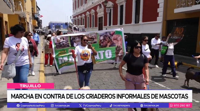 Hasta la Plaza de Armas de Trujillo llegaron varias personas junto a sus mascotas quienes pertenecen a la asociación animalistas unidos por un mundo mejor región La Libertad para realizar una marcha en protesta contra los criaderos informales y a la venta ilegal de mascotas un problema de nunca acabar que se da en el distrito a vista y paciencia de las autoridades quienes piden que se haga prevalecer la ley 30407.