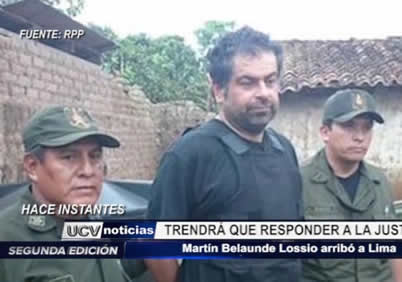 Tras permanecer cinco días en la clandestinidad, fue recapturado Martín Belaúnde Lossio, en el departamento del Beni, en Bolivia. El prófugo fue intervenido a 90 kilómetros de la frontera con Brasil y trasladado a La Paz.