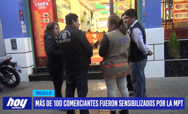 Cerca de 100 comerciantes formales del centro históricos, fueron sensibilizados por la municipalidad de Trujillo, con la finalizad de conocer la ordenanza para el aviso publicitario y las sanciones a quienes la infrinjan.
