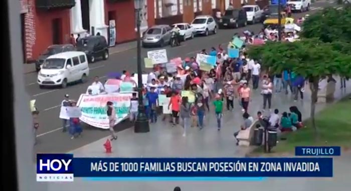 Los manifestantes llegaron de forma masiva a la Plaza Mayor de Trujillo, para pedir a los regidores de la comuna provincial, aprueben este pedido, mediante el cual buscan su permanencia en la zona invadida hace varios años atrás.