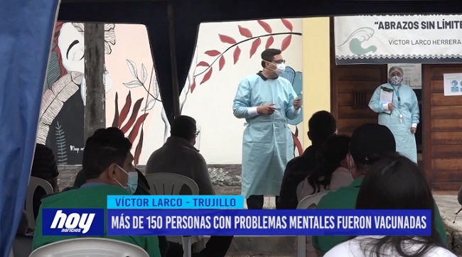 En el centro de salud mental comunitario de Víctor Larco “Abrazos sin límites” se desarrolla la vacunación a personas con problemas mentales. El médico psiquiatra, Manuel Ñique, dijo que en la zona han inmunizado a más de 150 pacientes.