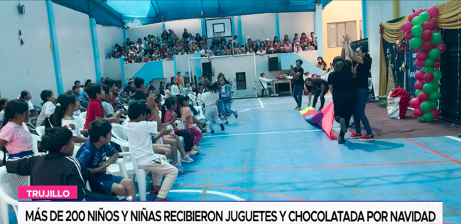 Con la finalidad de brindarles un momento de alegría y diversión, aproximadamente 200 niños y niñas de escasos recursos económicos del distrito de Alto Trujillo, fueron bendecidos con regalos, show y una rica chocolatada, ofrecida por los integrantes del ejército de salvación.