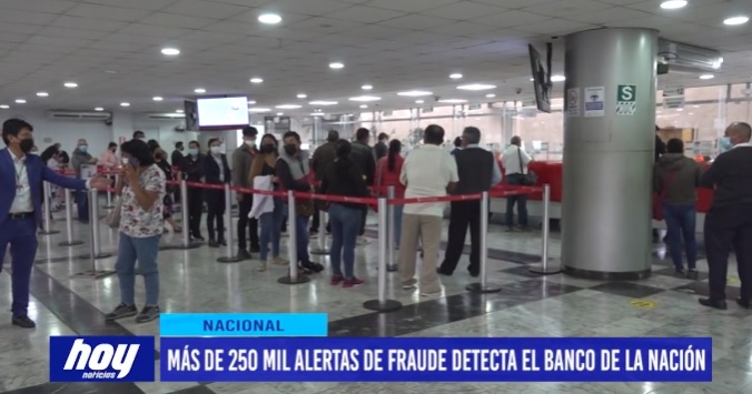 En lo que va del año, son más de 253 mil alertas de fraude atendidas por el Banco de la Nación, lo que ha significado una recuperación de un millón 478 mil de soles. Ello debido al servicio de monitoreo permanente de prevención.