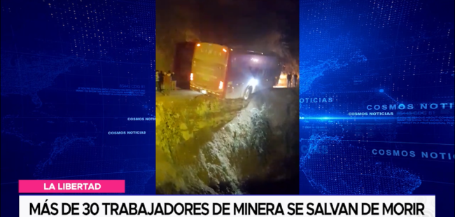 Un bus de la empresa de transportes Línea protagonizó un accidente en la provincia de Pataz, región La Libertad, cuando la llanta trasera del vehículo quedó colgando fuera de la carretera. El incidente ocurrió a la altura de Vijus, donde más de 30 pasajeros, trabajadores de una contrata que laboran para una empresa minera, se salvaron de milagro.