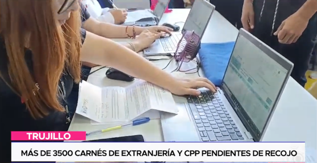 Más de 3,500 carnés de extranjería y carné de permiso temporal de permanencia pendientes de recojo en la ciudad de Trujillo serían dados de baja si los ciudadanos no se acercan a retirarlos en la sede donde realizaron el trámite en el más breve plazo. La superintendencia nacional de migraciones pide a esta población recoja su documentación.