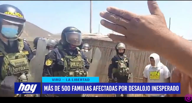 Más de 500 familias del distrito de Guadalupito, provincia de Virú, fueron desalojadas este miércoles, según indican sin previo aviso, las personas afectadas pidieron la presencia de autoridades regionales, ya que aseguran que ellos los habrían respaldado para que vivan en el lugar.