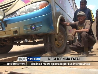 Un mecánico encuentra absurda muerte al ser aplastado por un bus interprovincial. El soporte de la unidad cedió cuando la víctima efectuaba trabajos de mantenimiento en plena vía pública.