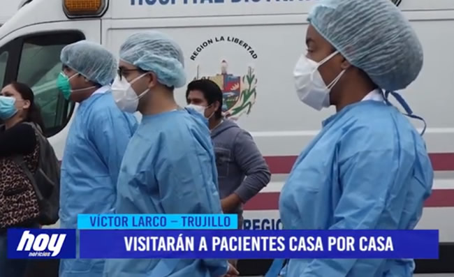Cerca de 20 profesionales de salud iniciaron hoy el trabajo casa por casa en el distrito de Víctor Larco para visitar a los pacientes sospechosos de coronavirus y atender los casos positivos. Además, les entregarán sus medicamentos respectivos.