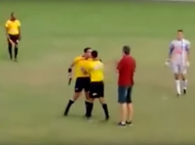 En un partido de fútbol brasileño entre los equipos de Brumaldinho y Amantes de Bola, el árbitro Gabriel Murta sacó una pistola en medio de una disputa por una tarjeta roja.