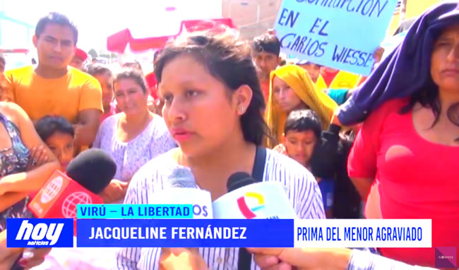 Protestan por un caso de violación al interno del colegio Carlos Wiese de Chao en Virú. Un menor de edad del segundo grado de primaria fue víctima de abuso sexual hasta en cuatro ocasiones según relata su familia, y según lo releva el examen del médico legista.