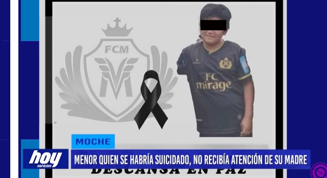 Lamentable, en el distrito de Moche en la ciudad de Trujillo un menor de 12 años falleció se presume que se trató de un suicidó. El hecho ocurrió en una vivienda de la localidad en donde recibía ayuda como alimentación, clases de baile pues, según los vecinos no recibía la atención de su madre.