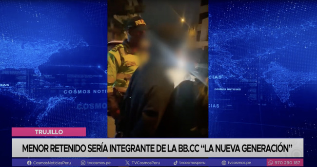 Personal de la Policía Nacional del Perú intervino y retuvo a un menor de 16 años de edad, alias “El Nene”, en el distrito trujillano de Florencia de Mora. El joven sería presunto miembro de la organización criminal «La Nueva Generación». Quien fue capturado por infracción a la ley penal contra la seguridad pública, por uso o porte de armas, municiones y/o explosivos, y contra el patrimonio por extorsión.