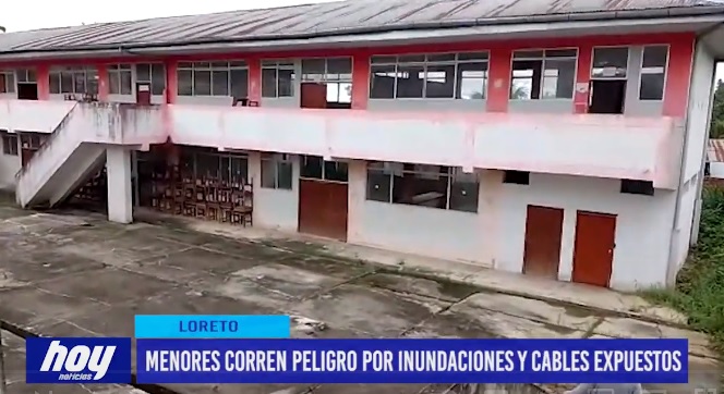 Padres de familia y profesores exigen mejoramiento de “Club de Leones de Lengo Alemania “ ubicado en el distrito de San Juan Bautista ciudad de Loreto, ellos temen por la vida de los menores pues podrían electrocutarse a causa de inundaciones y cables expuestos.