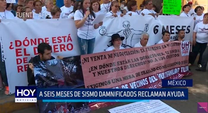 A seis meses del terremoto de 7,1 grados que dejó 369 muertos en el centro de México, damnificados recordaron a las víctimas y reclamaron ayuda para reconstruir sus hogares, mientras siguen viviendo en campamento provisional.